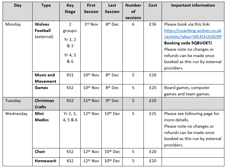 We are pleased to be able to offer a variety of after school extra-curricular clubs here at St. Peter’s. All clubs run for an hour after school (from 3:15 – 4:15pm) unless otherwise stated.