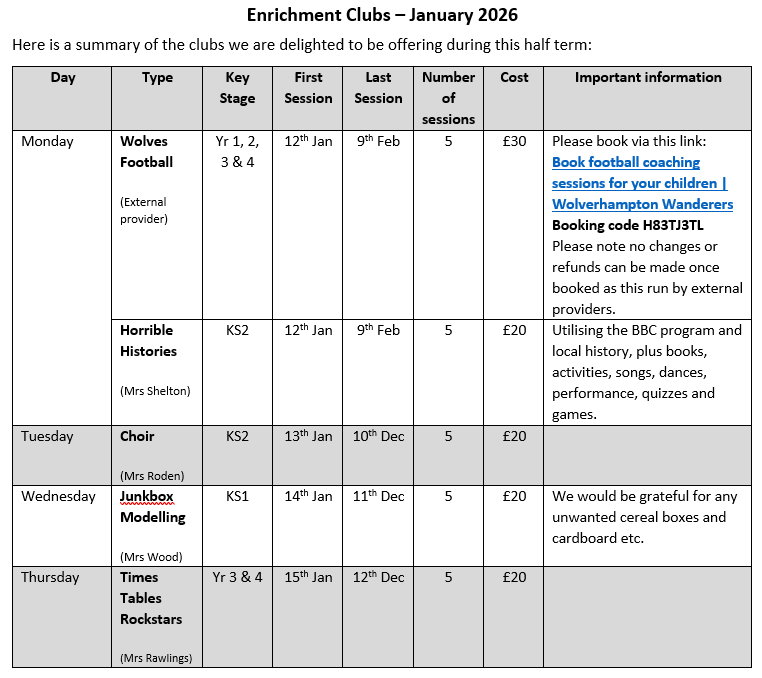 We are pleased to be able to offer a variety of after school extra-curricular clubs here at St. Peter’s. All clubs run for an hour after school (from 3:15 – 4:15pm) unless otherwise stated.